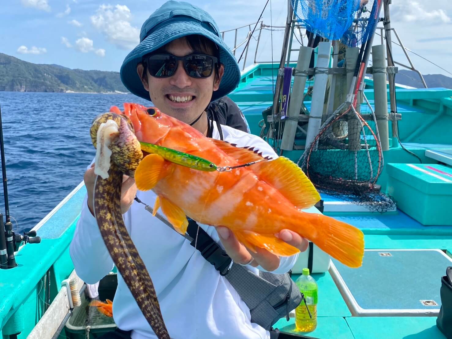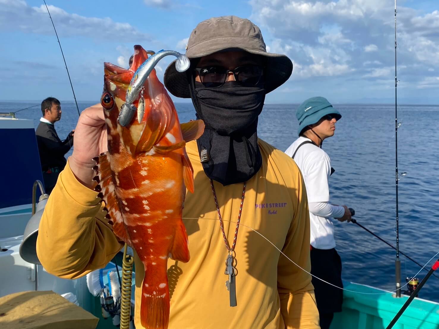 ロックフィッシュに出船。アカハタは良い型まじりでポツポツヒットしました。他にオオモンハタ、カサゴなどまじりました。