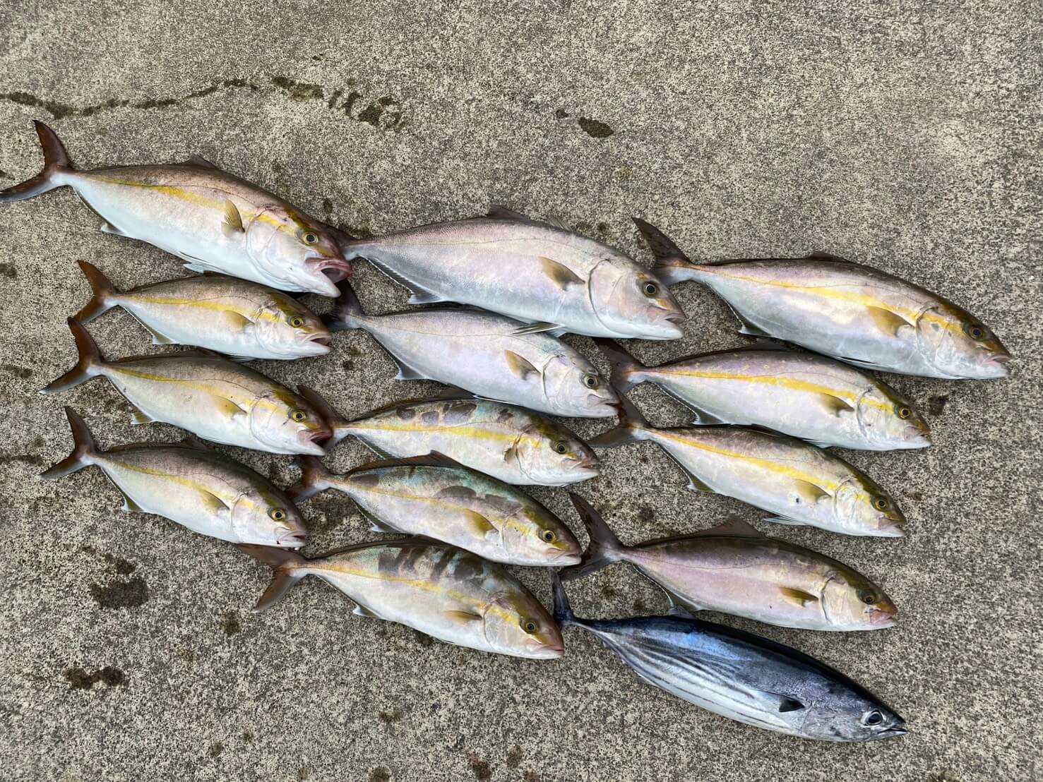 ジギングに出船。根魚は食い悪く苦戦しましたが後半カンパチ連発で楽しめました。
