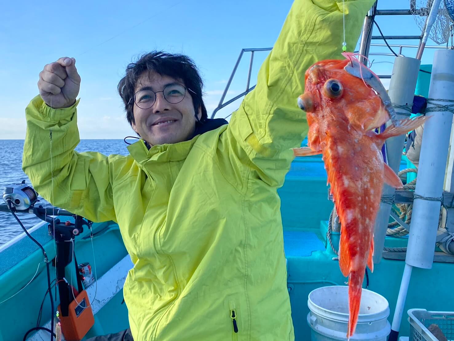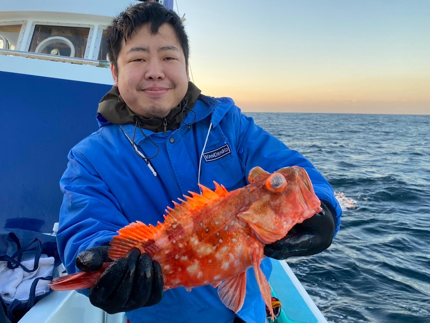 オニカサゴに出船。今日は潮悪くあたりも少なく苦戦しましたが、オニカサゴ、カンコ、ヒオドシ、ユメカサゴ、アヤメカサゴが釣れました。