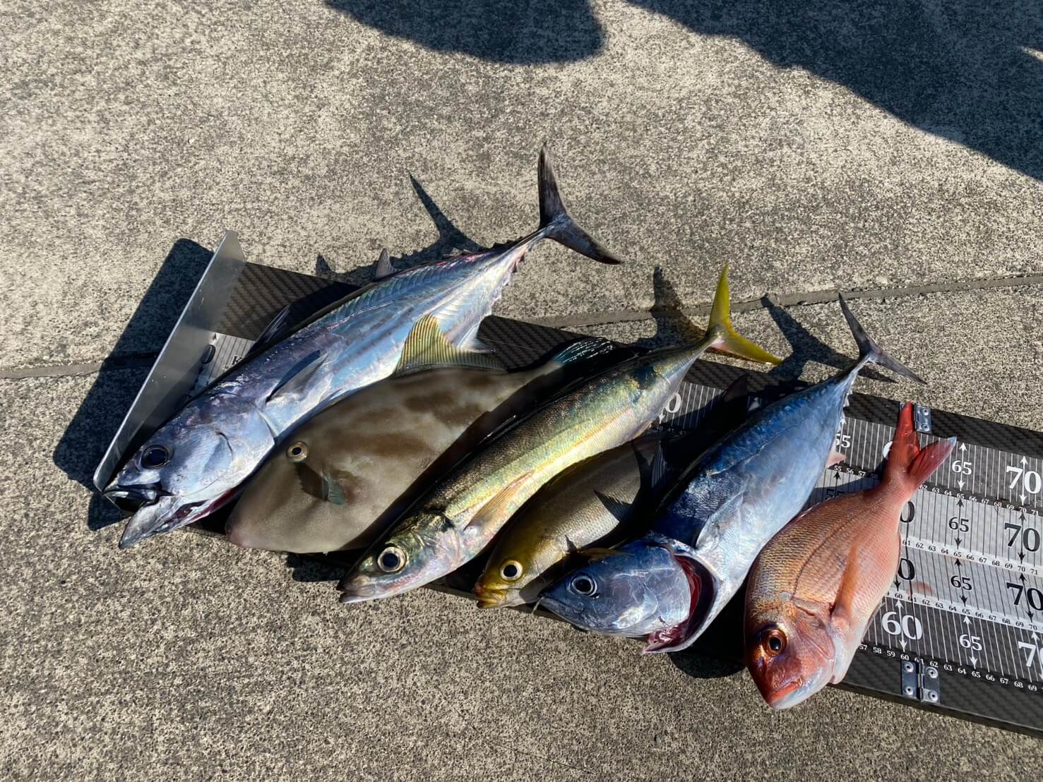 マダイに出船。今日もあたりは多く楽しめました。マダイは小型主体ですが船中33枚。他にイナダ、ヒラソウダ、オオモンハタ、ウスバハギ、アカヤガラなど魚種も多彩でした。2日間ありがとうございました。
